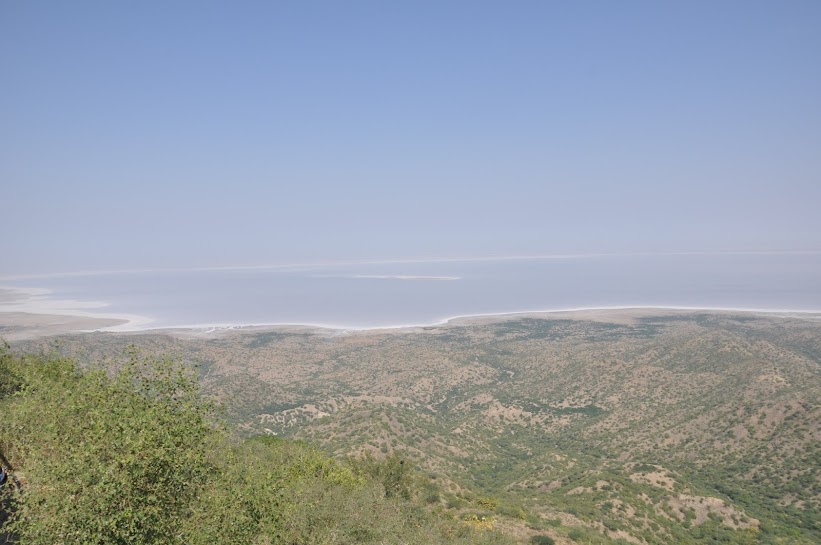 Were we in for a shock, with hundreds of noisy people waiting for the foxes. 1 did arrive, but ran as soon as it saw the huge crowd. Then began the struggle between a cow, who wanted the same prasad and the guard. By the time we got back to our bikes, it was mobbed. We took turns to visit the peak from where the whole of Rann of Kutch is visible, and both of us were tired explaining what we were doing, what the bikes cost...