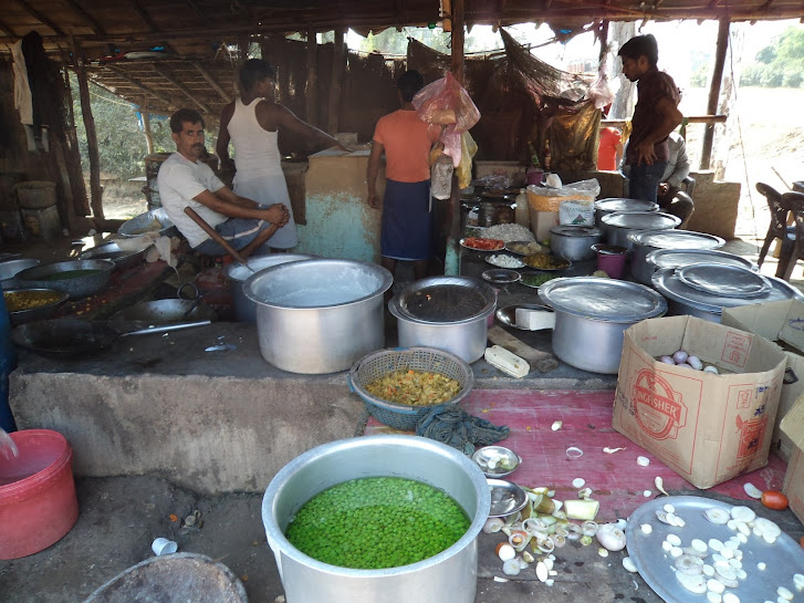 We were joined by few Kolkata riders for around 100km towards Varanasi. After breakfast at BP ghar dhaba, we left the Kolkata riders, and proceeded to Varanasi. chhattisgarh to our surprise had the best roads, with cemented and banked curves. We passed through long convoys of sumo's/jeep's/buses on the way to some political rally. The traffic was stopped to distribute food among the vehicles. Once the roads opened up, we were having so much fun, that we hesitated to stop, but the hunger finally caught up.
