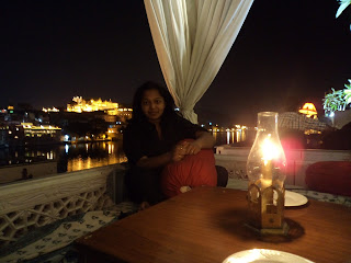 I tell you, the number of missed calls on the cell, from the hotel, from the palace security.. it just was over-whelming. We gave each one of them a call informing them of the rick guy returning us, and thanked them. Finally relieved we headed to hotel roof top, which was draped in white curtains, and with a open view to the lake and palace. We had some real good food, me wild beans curry, and wife lal-mas (red goat meat). Relieved we went to bed, and reflected on an amazing Rajastan. We would be leaving it behind in the morning.