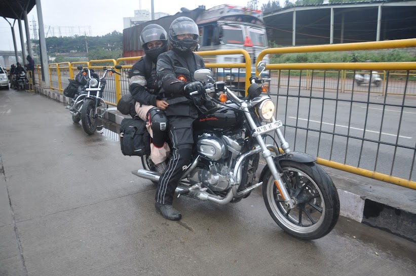 We decided the flag off to be from Tusker HD, and roll we did in clear weather. Things were indeed looking good, and the storm warning was nothing but one more blooper from the met department. We stopped @ shoolagiri for fuel (TN fuel is cheaper), and my wife decided she needed to grab a burger. True to the word fast food, the McD burger was gobbled up before the 2 bikes were fuelled up. There was still some hint of light rain, and we pushed towards Chennai. Then came the storm, and the kind of rain I've never seen before (I've spent a lot of time in Malnad so believe me). It was not just the rain, the wind was so fierce, we were getting tossed in the cross winds. Remember the bike weighed almost 300kg + 1 rider + 1 pillion + luggage for ~20 days, and the bike felt feather weight.